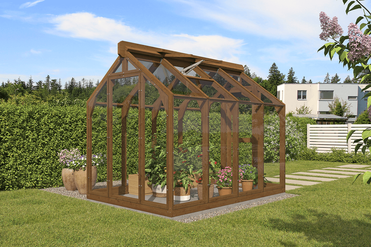Et lite drivhus i tre er ikke bare for dyrking av planter – det er også en vakker hagepaviljong hvor du kan slappe av, spise eller være vertskap for gjester omgitt av grønt. Den naturlige varmen i treverket skaper en lun og innbydende atmosfære, og gjør drivhuset til et elegant uterom. Bruk det som et rolig fristed, en sommerlig spiseplass eller et kreativt arbeidsområde – det tilpasser seg alle årstider og anledninger. Ved å kombinere funksjonalitet og sjarm blir det et sted der natur og komfort møtes.