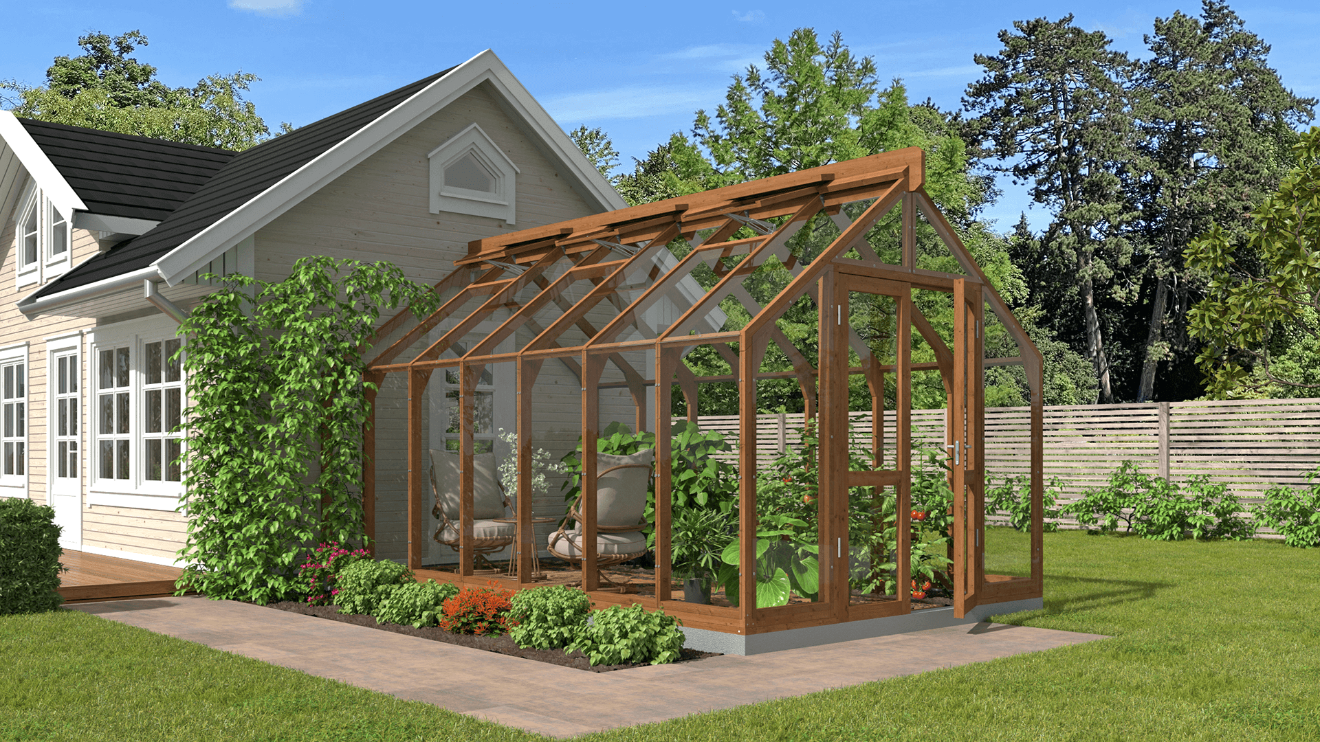 Greenhouse AG 2 with its unique and patented glass-on-frame design is the result of exceptional craftsmanship and meticulous attention to detail. Each greenhouse is skillfully manufactured by our experienced specialists, ensuring that every unit meets the highest standards of quality and durability. This wooden greenhouse has been specifically engineered with Nordic weather conditions in mind, ensuring it performs even in harsh climates.