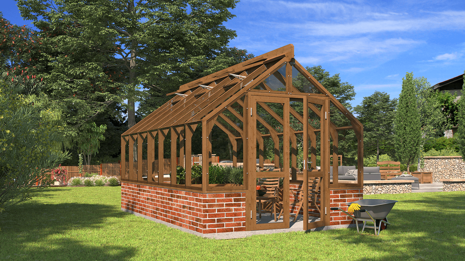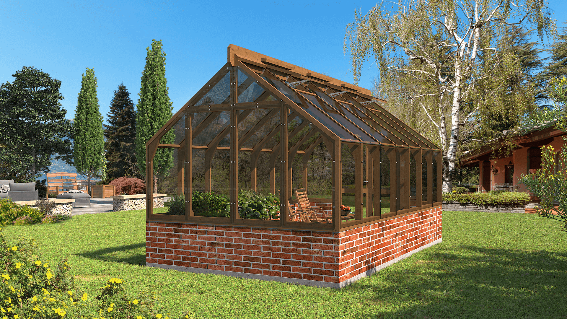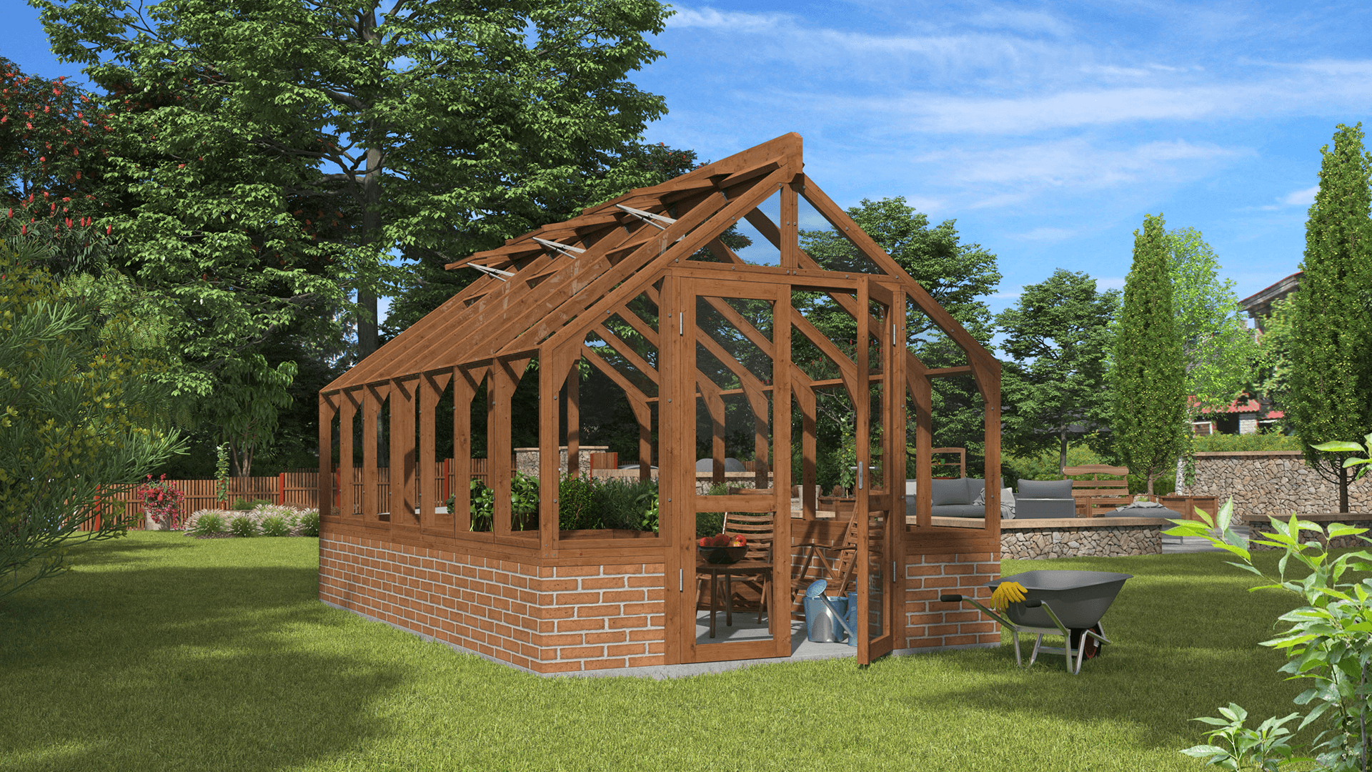 A wooden greenhouse is not only for growing plants — it’s a beautiful garden pavilion where you can relax, dine, or entertain surrounded by greenery. The natural warmth of wood creates a cozy, inviting atmosphere, turning your greenhouse into an elegant outdoor room. Use it as a peaceful retreat, a summer dining area or a creative workspace — it adapts to every season and occasion. Combining function and charm, it’s a space where nature and comfort meet.