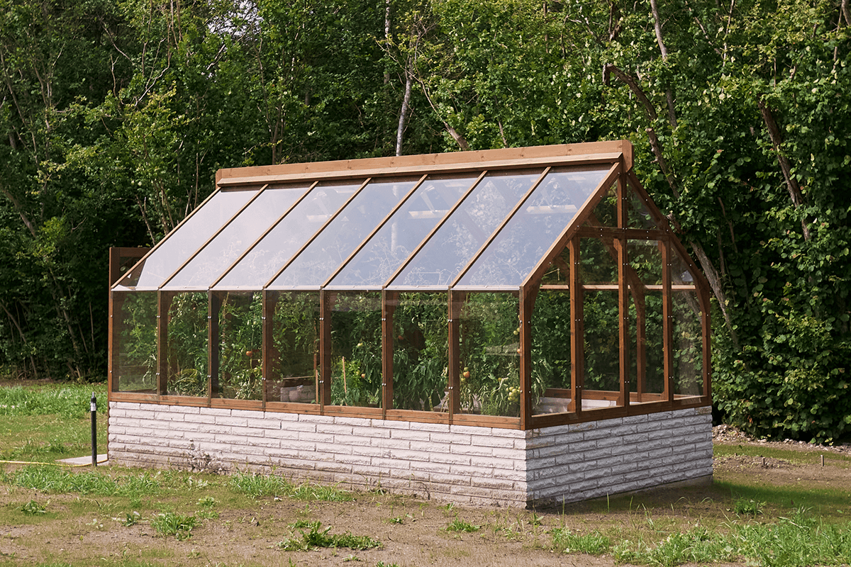 Greenhouse frame is made of resilient Thermowood® or Accoya® wood.