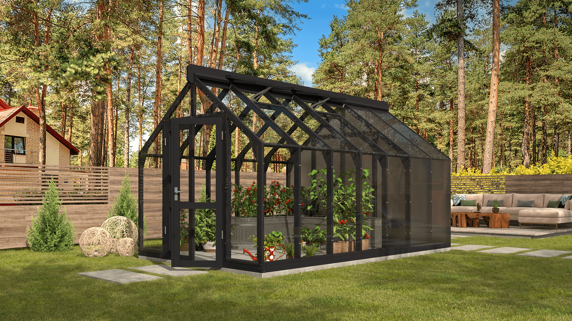 This greenhouse with recessed side doors is a perfect blend of modern design and natural elegance, crafted to complement any outdoor space. With its unique glass-on-frame construction, this wooden greenhouse represents the perfect fusion of style, functionality and modern engineering. Use it to cultivate fresh, organic vegetables, aromatic herbs and vibrant flowers or simply turn it into your cozy retreat for relaxation to reconnect with nature and enjoy the outdoors in comfort, regardless of the weather.