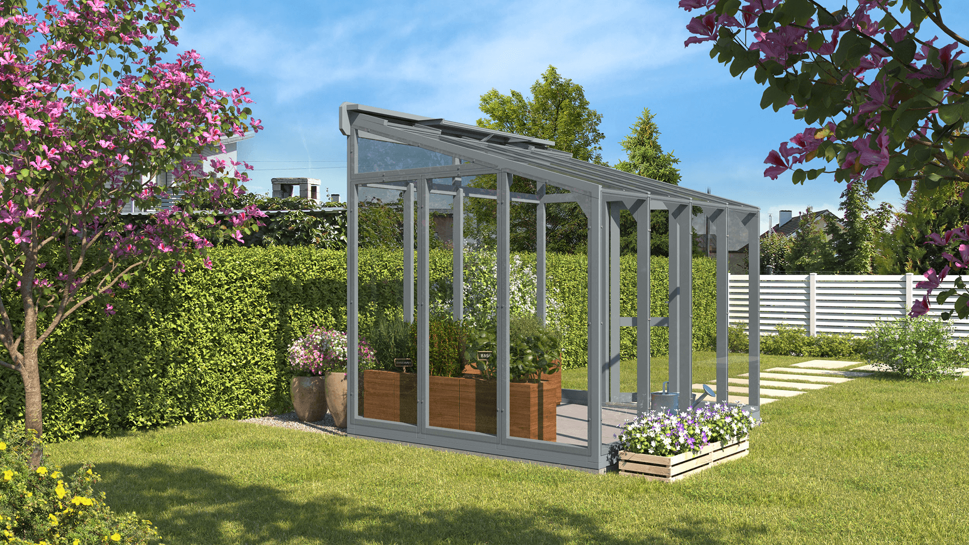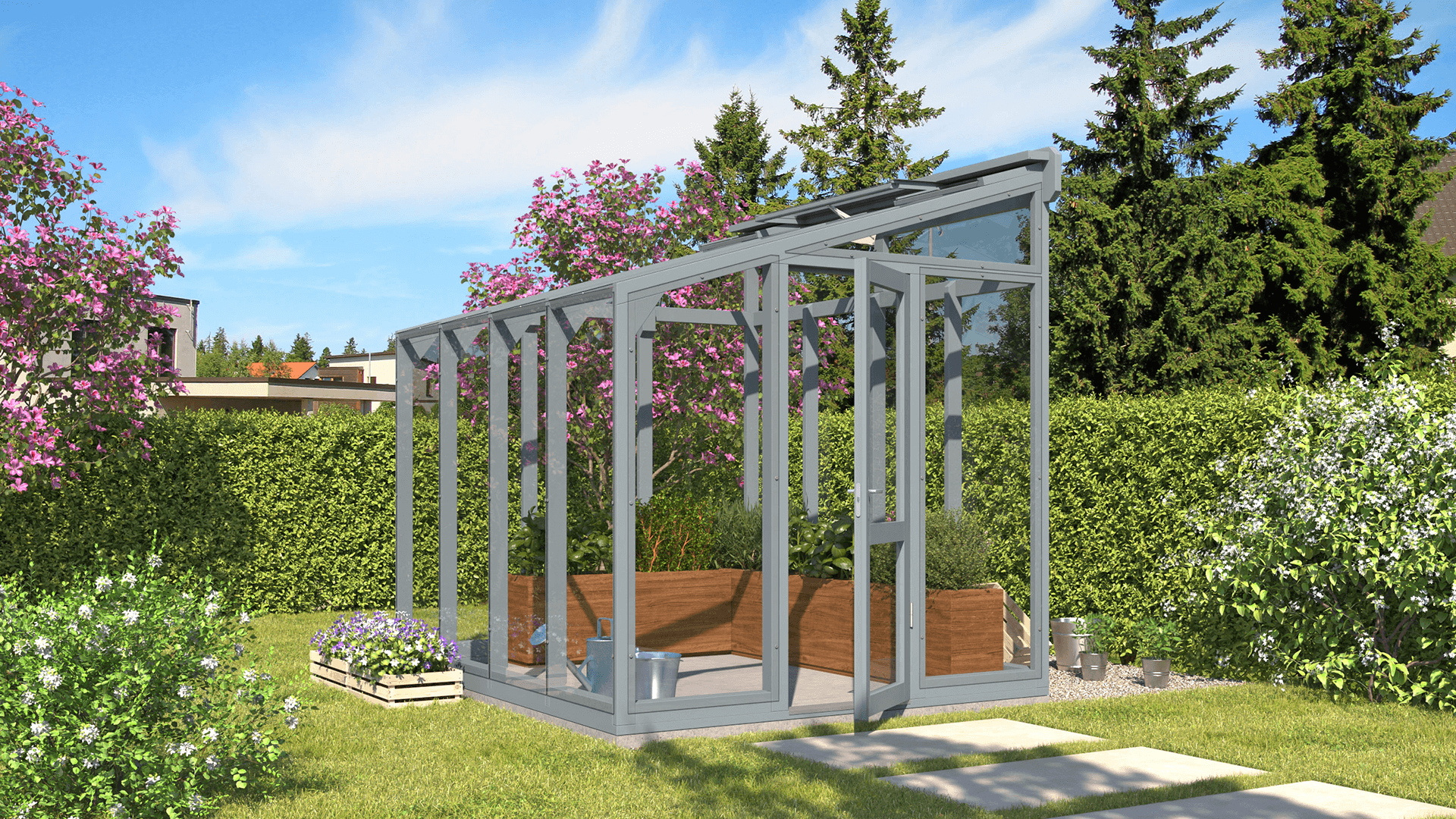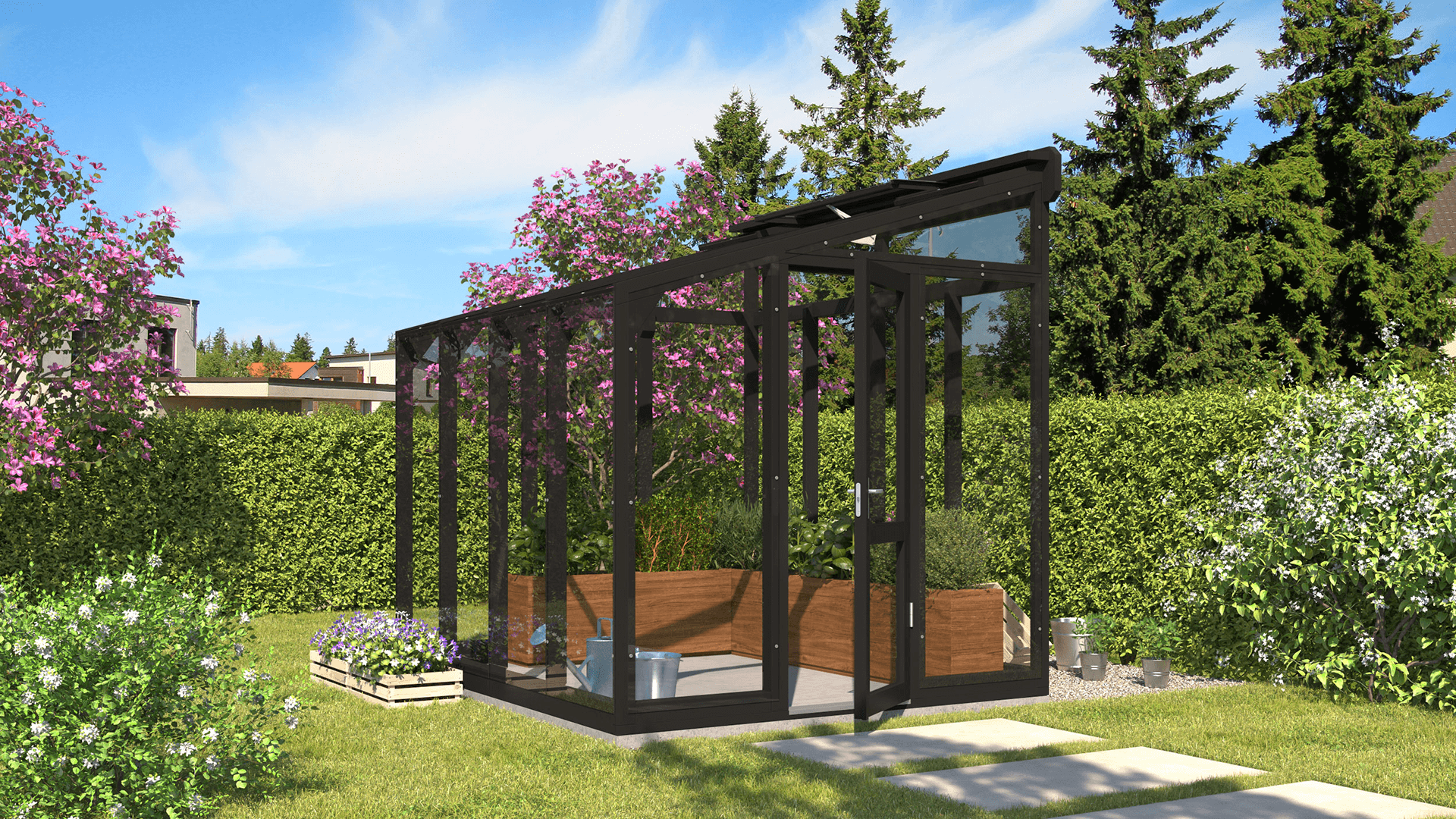 Greenhouse ST 1 is fully glazed with strong 4 mm tempered safety glass.